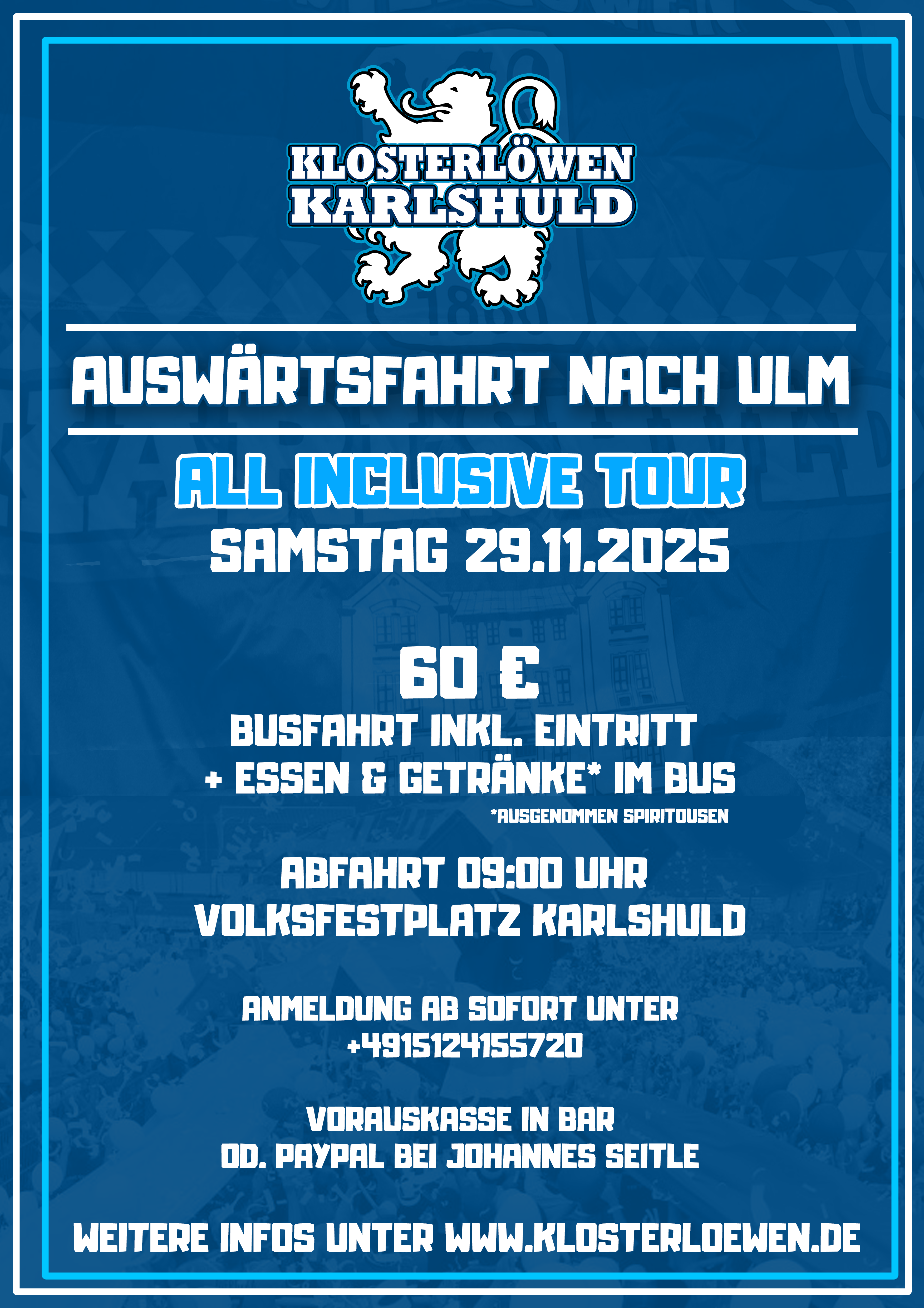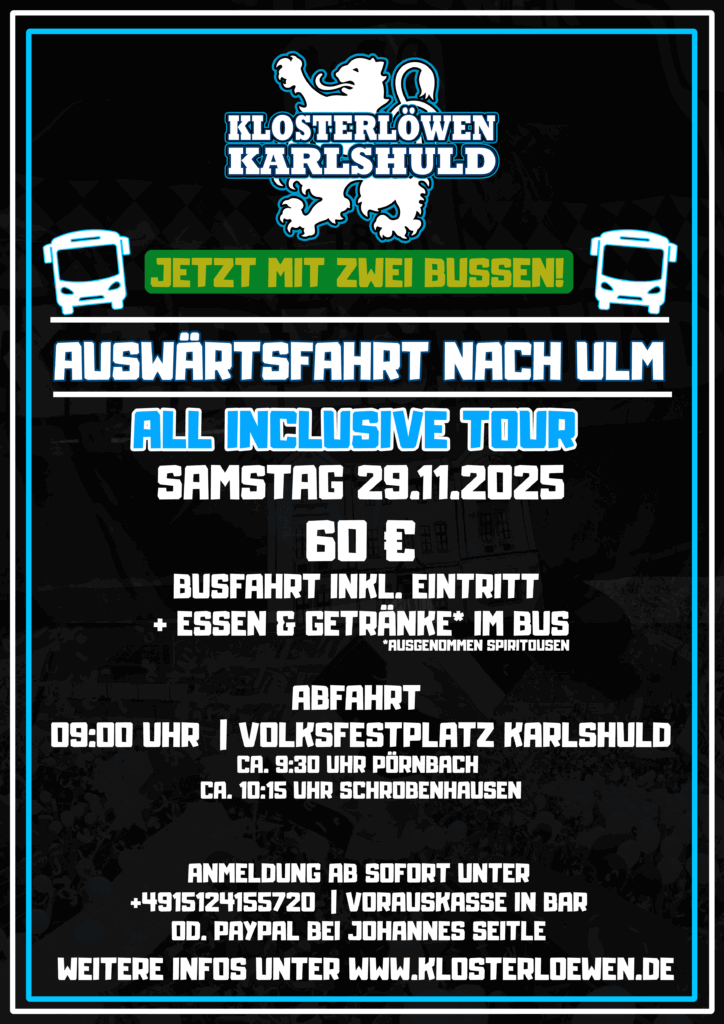 🦁 Auswärtsfahrt der Klosterlöwen nach Ulm – All Inclusive!